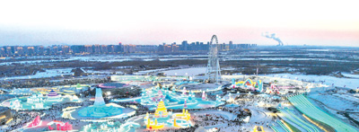 2月15日,黑龙江哈尔滨冰雪大世界园区。新华社记者 王建威摄 |