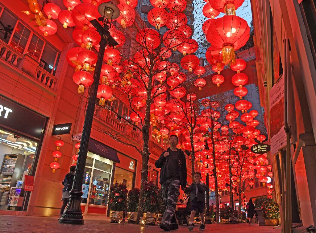 1月31日,香港湾仔利东街挂满红灯笼。新华社记者 陈铎 摄