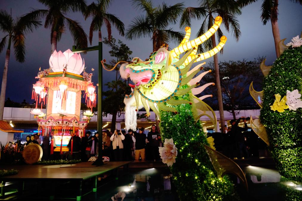 2月24日,人们在香港尖沙咀钟楼旁赏花灯。新华社记者 王申 摄