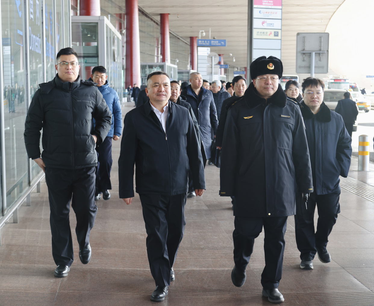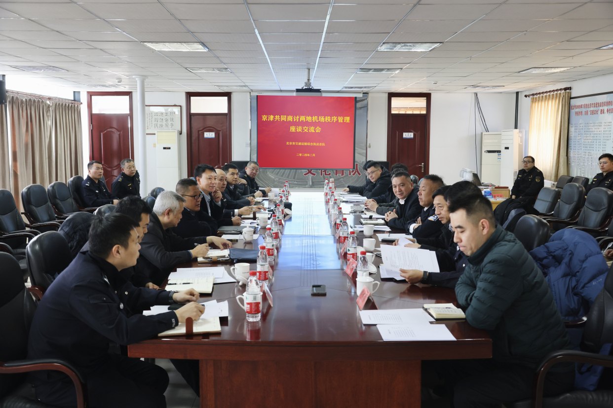 2月29日上午,天津市交通委、交通运输执法总队、滨海国际机场公安分局、滨海国际机场公共区管理部一行领导到首都机场开展调研,北京市交通运输综合执法总队于龙副总队长带队,委出租处、总队机关、十一支队和首都机场公安局、公共区管理部相关负责同志等一行陪同调研。