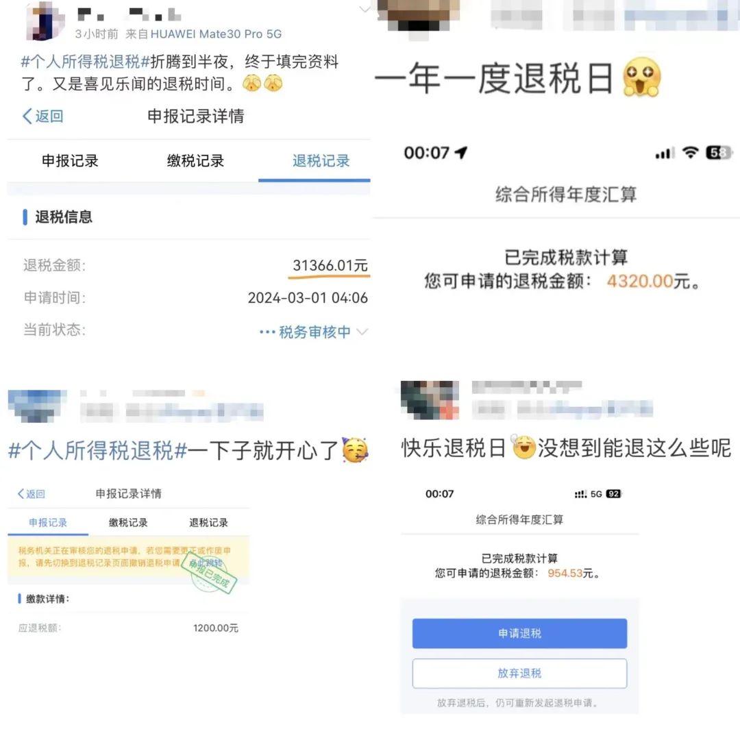 据网友们晒出的退税结果,几百、几千、几万的都有,有网友直呼“喜提一笔巨款”“三月的第一份快乐”。