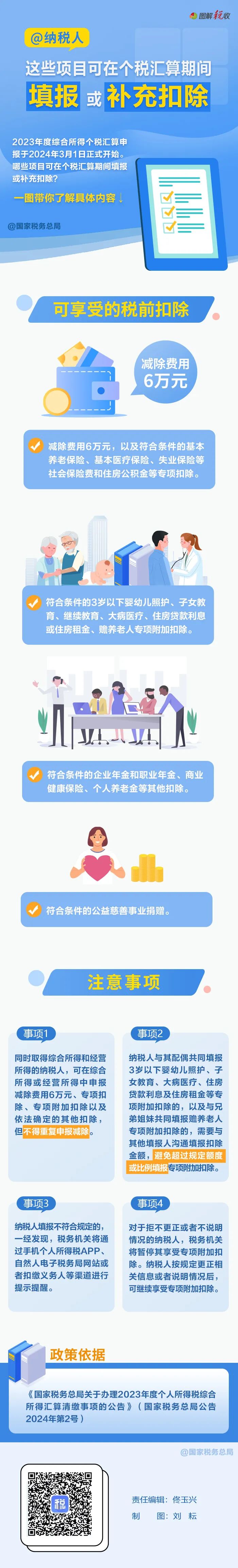 此外,税务总局近日发布公告明确,一些项目可在个税汇算期间填报或补充扣除。