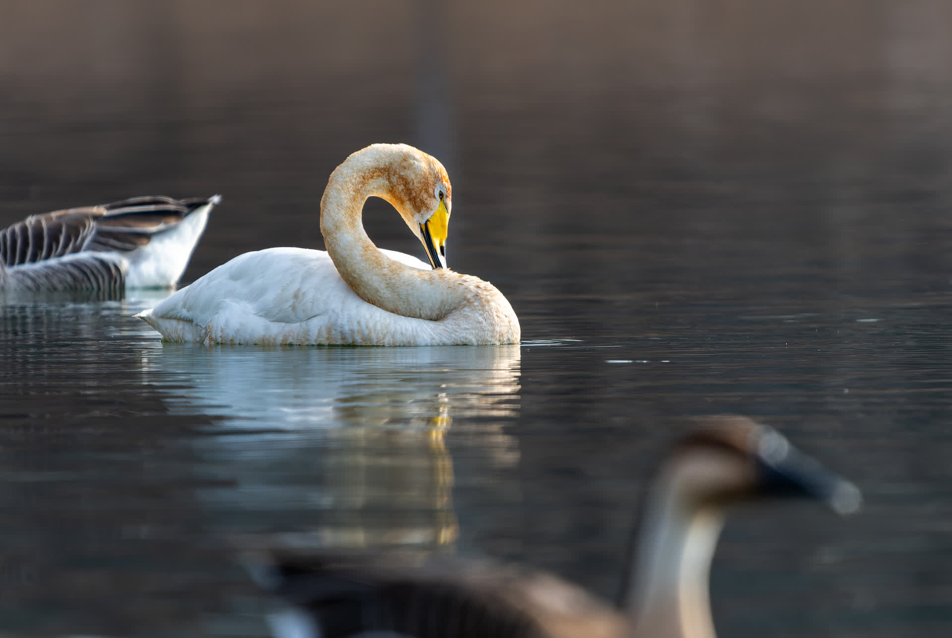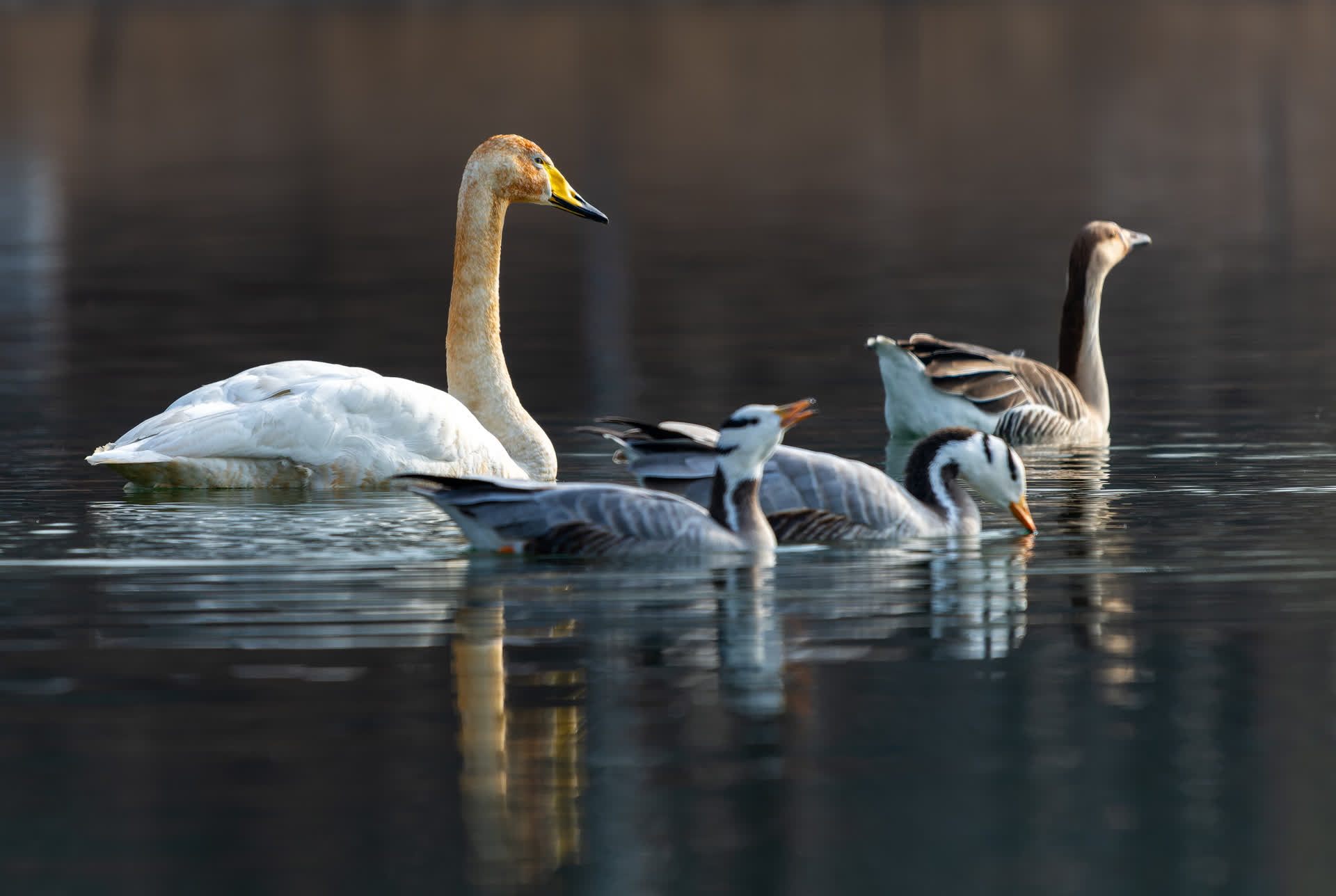 观鸟爱好者提到,在观赏天鹅之美时,也有部分市民在投喂野生大天鹅。李理提醒:“大天鹅长距离迁徙,它自己找到的食物最健康、安全。市民投喂的点心、饼干等食物不利于大天鹅健康,若误食了塑料袋,对大天鹅的损伤就更大了。大天鹅性格机警,市民在观赏大天鹅时不要做大的肢体动作,不要大声喧哗,文明观鸟。”