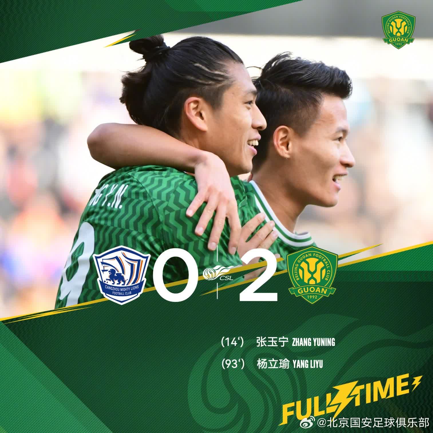 3月2日下午,北京国安队在2024赛季中超联赛首轮中,凭借张玉宁、杨立瑜上下半场的进球,客场以2比0完胜沧州雄狮队,拿下赛季“开门红”。