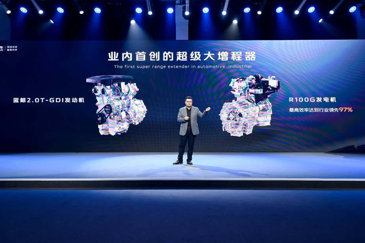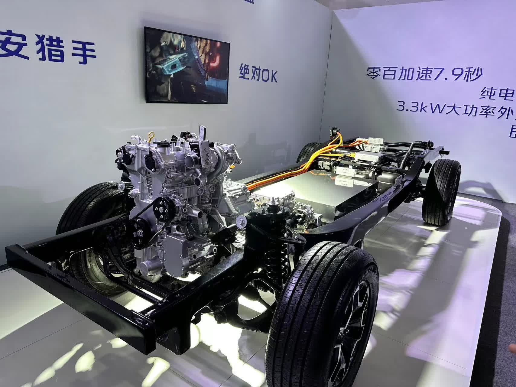 增程动力路线能够满足皮卡用户更广泛的用车场景和需求。长安猎手重要的一个卖点就是搭载了业内首创的超级大增程器,由蓝鲸2.0T发动机和R100G发电机构成,能够有效解决重载爬长坡等特殊路况导致的整车动力不足问题。