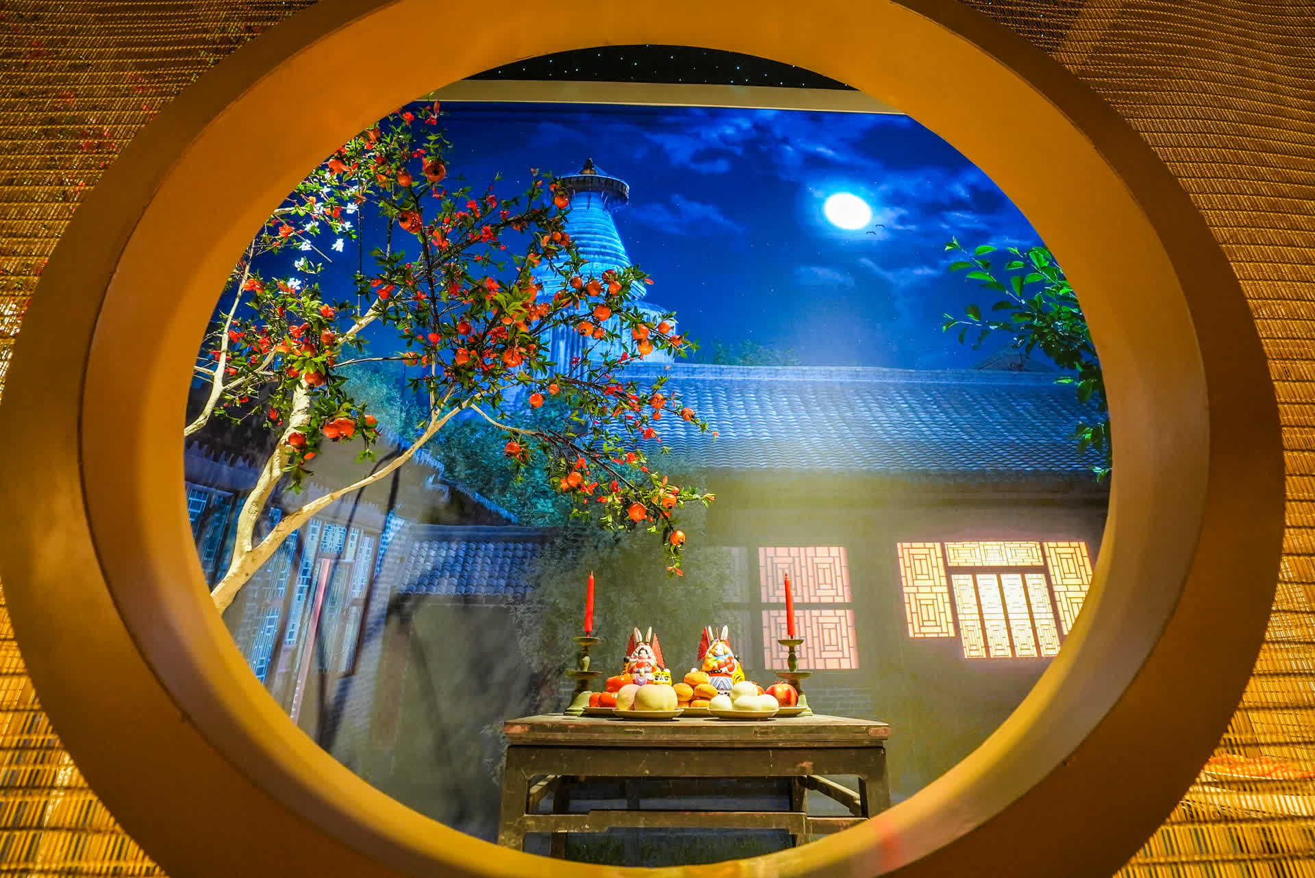 展厅里打造的中秋节场景也有讲究:圆月映白塔,胡同人家里,供奉着一对“兔儿爷”。在京城,兔儿爷既是中秋祭供之神,又是中秋玩赏之物。它和月饼一样,都是中秋标志性的节俗物品。旧时京味月饼最常见的是“自来红”“自来白”“翻毛月饼”等,若是家里自制月饼,就少不了“月饼模子”。陈思说,月饼模子多饰以月宫嫦娥玉兔及福禄寿等图案,形象生动有趣,展览中也特意展示了两件,分别是月宫兔子捣药、五福(蝠)捧寿的图案。“前人留下雕刻精美的月饼模子,已成为一件件艺术品,更是中秋民俗文化演化的一种记录,恒久地散发着合家团圆的味道。”