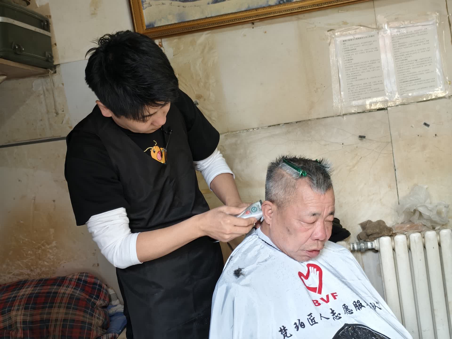 “嗡嗡……”周一下午,东城区锡拉胡同一位智力缺陷的老人家里,理发师孙凯左手翻动着梳子,右手握着推子,手腕轻轻一抬,一缕缕银发飘落下来。