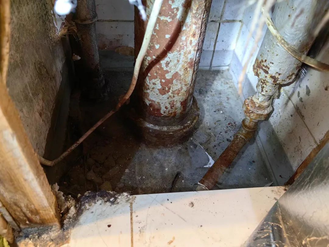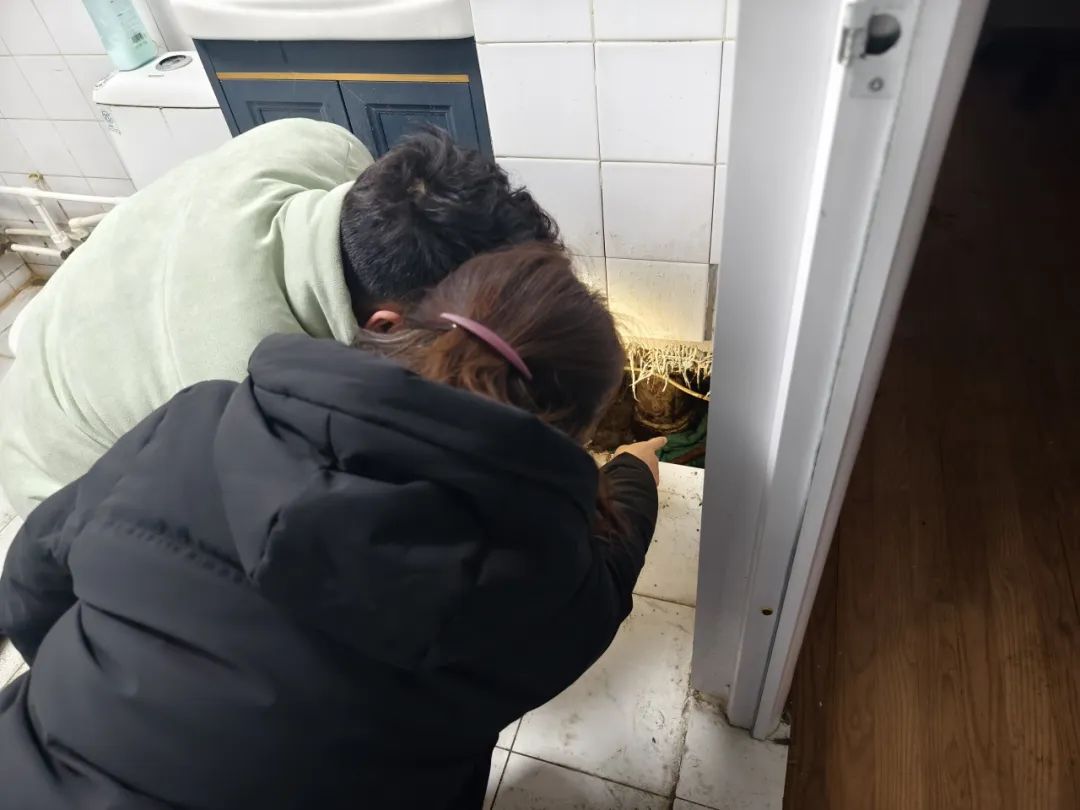 由于当时楼上住户离京,无法配合入户检修,社区工作人员多渠道多次联系,最终在房屋委托的中介公司配合下,社区工作人员联合物业一同入户查看,发现楼上住户家也有积水现象,最终在4楼房屋卫生间的主管道发现了漏点。此时管道周围已有不少积水,物业维修人员表示需要重新购置配件进行更换维修。