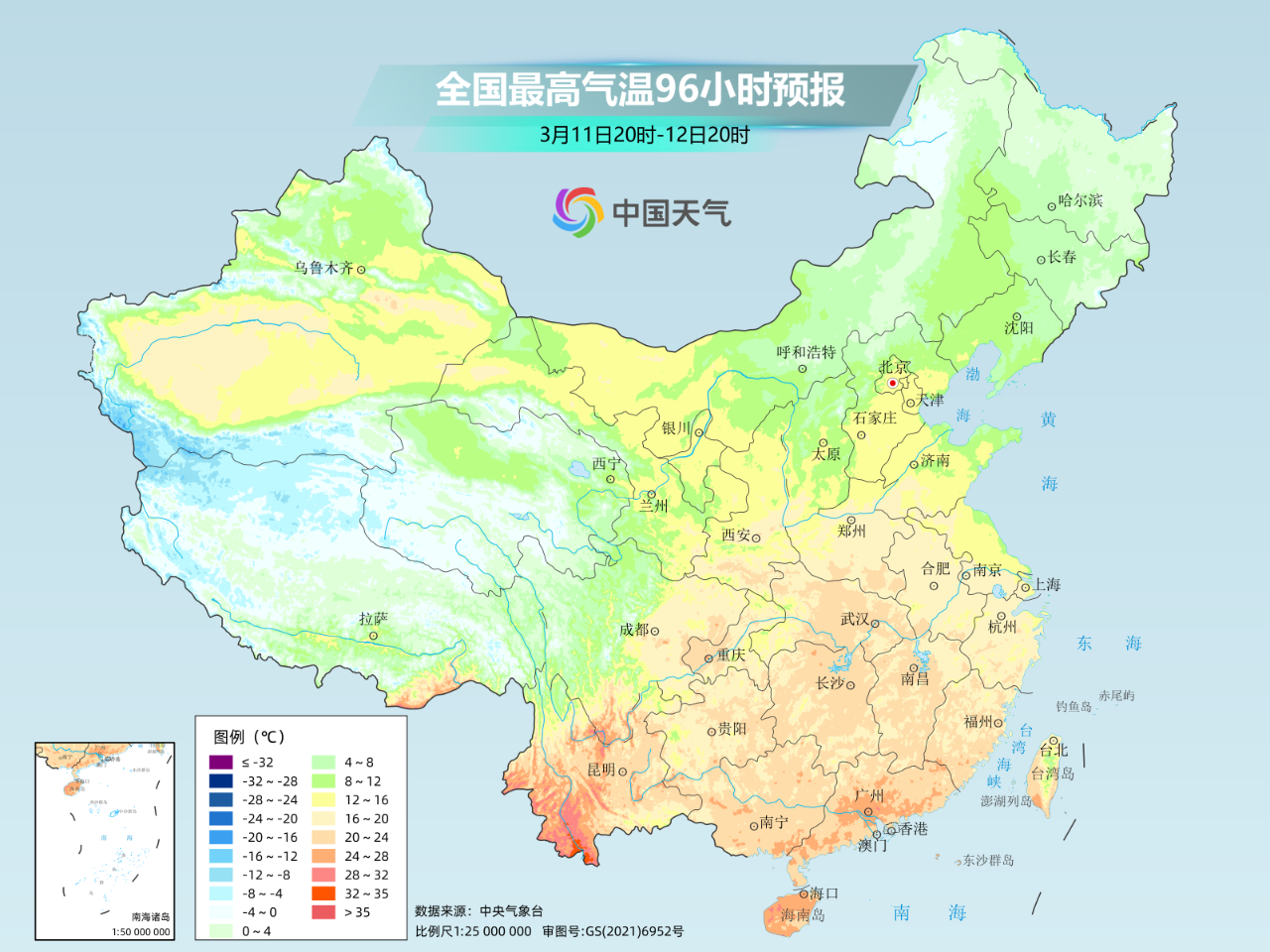 尤其北方大部地区升温幅度更大、速度更快。预计本周末到下周一前后,最高气温10℃线将北抬至东北地区南部,华北平原一带包括北京、天津、石家庄、济南、郑州最高气温将回升至15℃,甚至20℃上下。北方小伙伴可以脱下冬衣了。