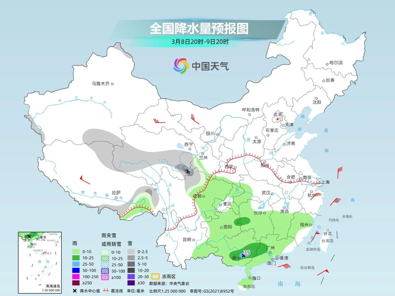 今天晚上,新一轮降水将从西南地区东部发展起来,明后两天,江南大部等地也将加入降水的行列之中,预计广西中东部、广东中北部、湖南中南部、江西中南部、福建西部等地将会有中到大雨天气,广西东部、广东西北部等地部分地区还可能出现暴雨,部分地区还会伴随对流天气。