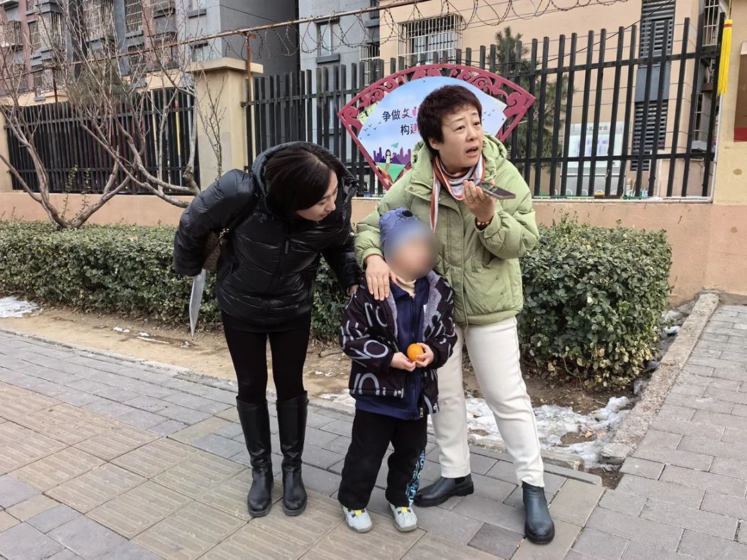 田荣华耐心地安抚孩子的情绪,让他逐渐平静下来。经过简单沟通,她得知孩子今年5岁,其家人外出买菜,自己被独自留在家中画画。由于找不到画笔,他便独自出门寻找家人,却在小区内迷路了。“孩子情绪比较紧张,有效信息只能说出自己的姓名和住在几号楼,说不出家长姓名和联系方式,我立即联系了那栋的网格员张志金。”田荣华说。