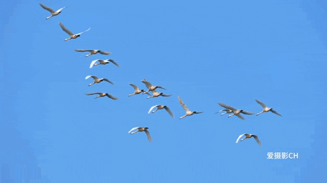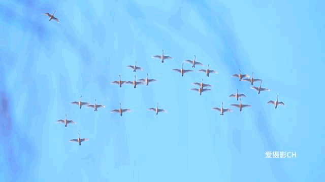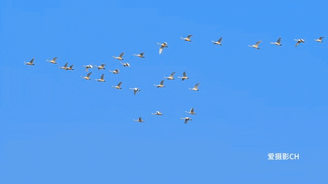白天鹅们在空中边展翅高飞边“高歌”