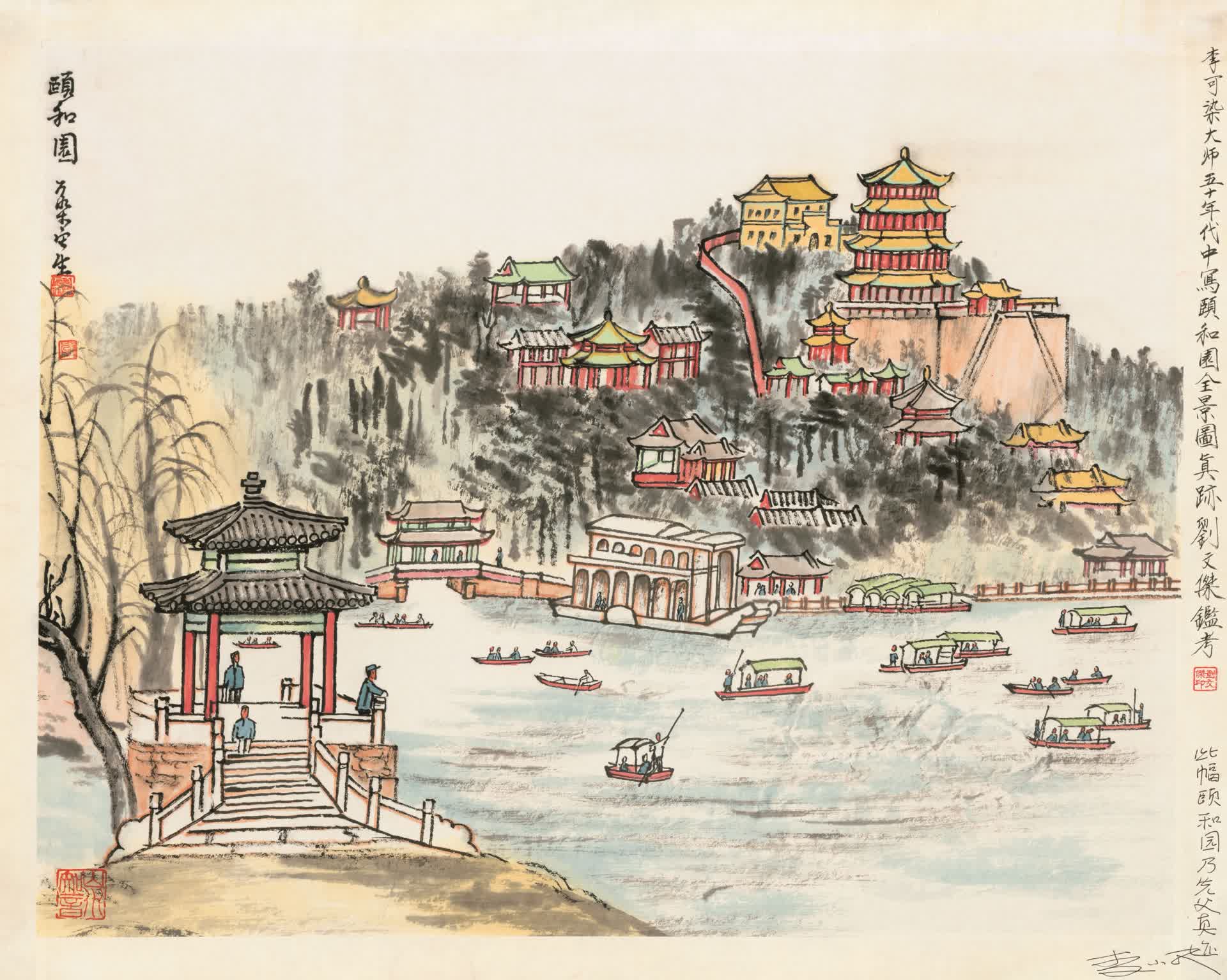 公元1750年,乾隆皇帝为表现孝道,庆贺母亲60大寿,在明代“好山园”旧址营建清漪园。工程历时15年,由万寿山和昆明湖组成。1860年,清漪园被英法联军烧毁。1886年,慈禧太后因养老之需重建。两年后,光绪皇帝将其更名为颐和园,取“颐养天年,和合万事”之意。凌空俯瞰,万寿山像一只振翅欲飞的蝙蝠,昆明湖像一枚寿桃,湖中南湖岛像一只巨大的乌龟——在“福禄双全”中,述说着“龟寿延年”。