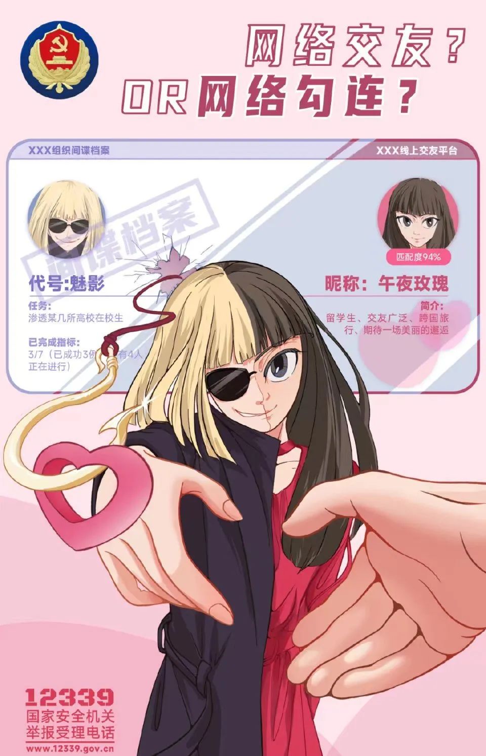 境外间谍情报机关人员可能以交友“恋爱”、网络求职等行为方式,以收集文献资料、发放调查问卷、拍摄风景建筑之类为名目,以丰厚的酬金为诱饵,采取“漫天撒网,重点捕鱼”的战术,诱使涉世未深的青年群体为其搜集、窃取情报。一旦“上钩”,境外间谍情报机关就会采取威胁、利诱、讹诈等手段施加控制,难以轻易脱身。
