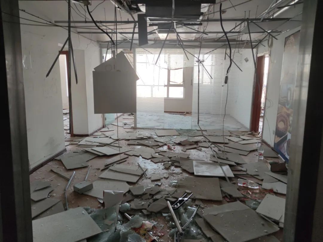 文化大厦越往下的楼层,受损情况越严重。中国新闻周刊在6层一住户家中看到,其屋内碎玻璃落了一地,轻钢笼股吊顶几乎完全塌陷。据悉,此次爆炸产生的响声甚至传到了数公里开外。