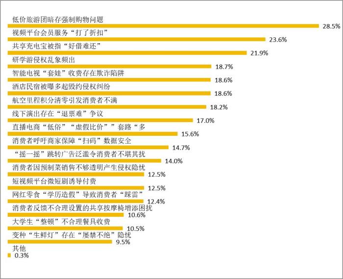 3月14日,中国消费者协会对外发布2024年“激发消费活力”消费维权年主题调查报告,调查结果显示,低价旅游团暗存强制购物、视频平台会员服务“打了折扣”、共享充电宝“好借难还”引共鸣。