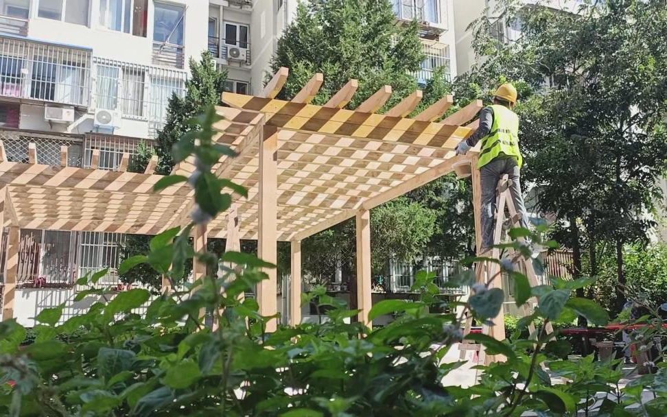 方案确定、资金到位,在区城指中心、区住建委的指导下,金鱼池西社区联合物业启动凉亭改造修复工程。“我们首先清理了凉亭内及其周边的杂物。为了纳凉,许多居民在凉亭顶部覆上了苫盖物,加上堆物堆料,清理起来的确是个不小的工程。”金鱼池西社区党委书记、主任刘磊回忆。