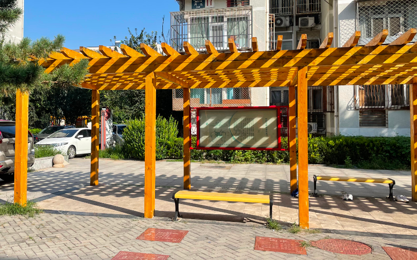 可好景不长,凉亭修好后,居民在这里拉绳子晾晒衣物的问题很快卷土重来。由于社区有半地下室,所以部分居民长期以来一直有晾晒衣物的诉求。得知这一情况,相关部门召开现场会,决定在小区内规划建设晾晒区域。这一方案得到了居民的认可和称赞。