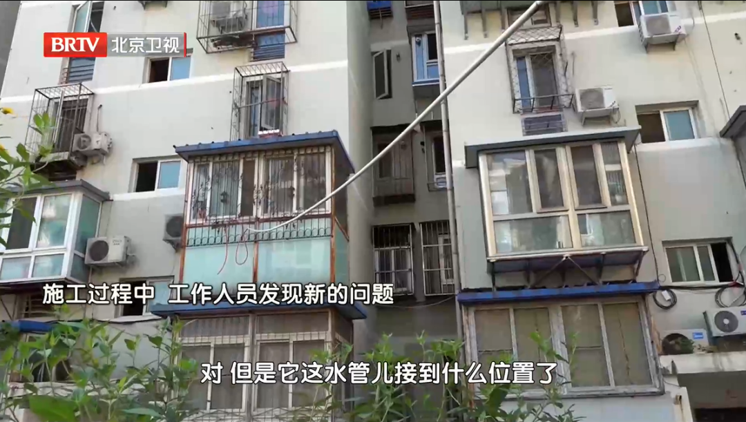 由于工作量大、涉及居民较多,随着工程推进,不时有新的问题显现。施工期间,从小区18号楼某单元门二层住户家窗户延伸到凉亭顶端的一根管子,引起了大家的注意。经过了解,这根10余米长的管子是居民此前为凉亭旁的绿植浇水用的水管,后已荒废弃用。时间久了,管子上还附着有电线等线路。经过社区与居民协商,该居民同意将管子拆除,其余线路也由施工人员处置妥当。