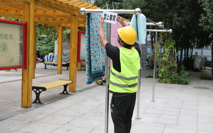 经过实地勘察,晾晒区域最终选址在16号楼北侧,并安装了专门的晾衣竿,既美观大方、安全可靠,又无遮挡、能通风,不影响周边环境。