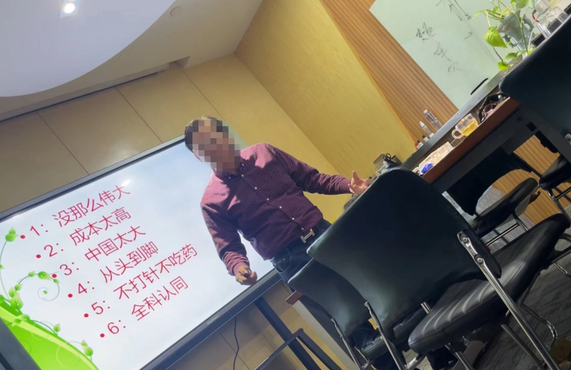 杨仁贵称此二人来自杭州某医学会,“我平时都在给医生院长上课,他们专业的理解快,你们的话要花更多时间。”