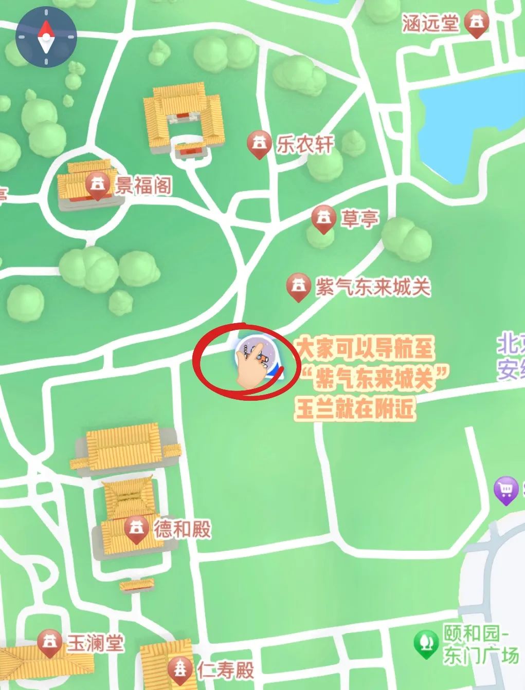 (图8已标注玉兰花的位置 紫气东来城关附近)