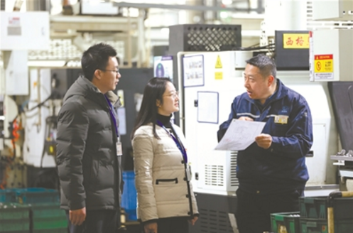 湖北省宜昌市纪检监察机关针对“合作投资”型行受贿问题,紧盯公职人员投资收息、收取分红、违规挂证、为企业站台、亲人代持企业股份等情形,通过个人自查、单位排查、重点抽查、专项核查、企业走访调查等方式开展整治。图为该市纪检监察干部在企业走访了解相关情况。唐强 摄