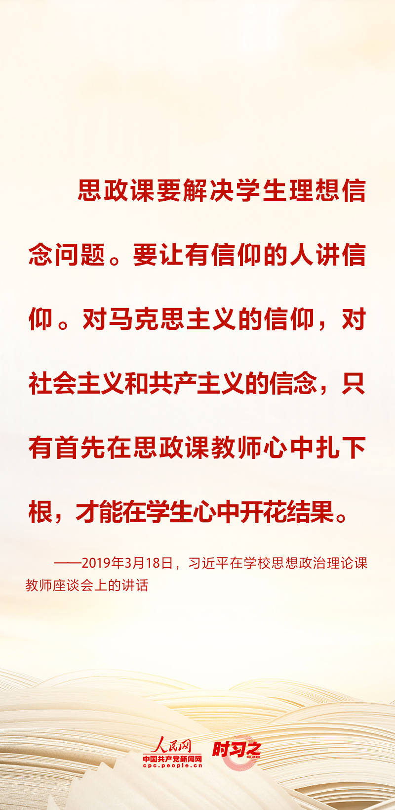 办好思想政治理论课关键在教师,关键在发挥教师的积极性、主动性、创造性。习近平总书记着眼培养社会主义建设者和接班人,高度评价思政课教师队伍在铸魂育人、立德树人方面的重大作用,对加强思政课教师队伍建设提出了明确要求。