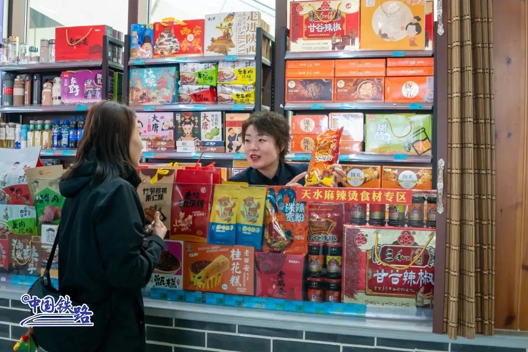 天水南站二楼候车室内增设三处“天水麻辣烫”原料专柜,专门售卖定西宽粉、甘谷辣椒等必备食材。同时,车站内还设立了特色产品展销专柜,推介天水呱呱、面皮、凉粉等特色小吃,以及天水樱桃、秦安蜜桃、花牛苹果等季节性水果。