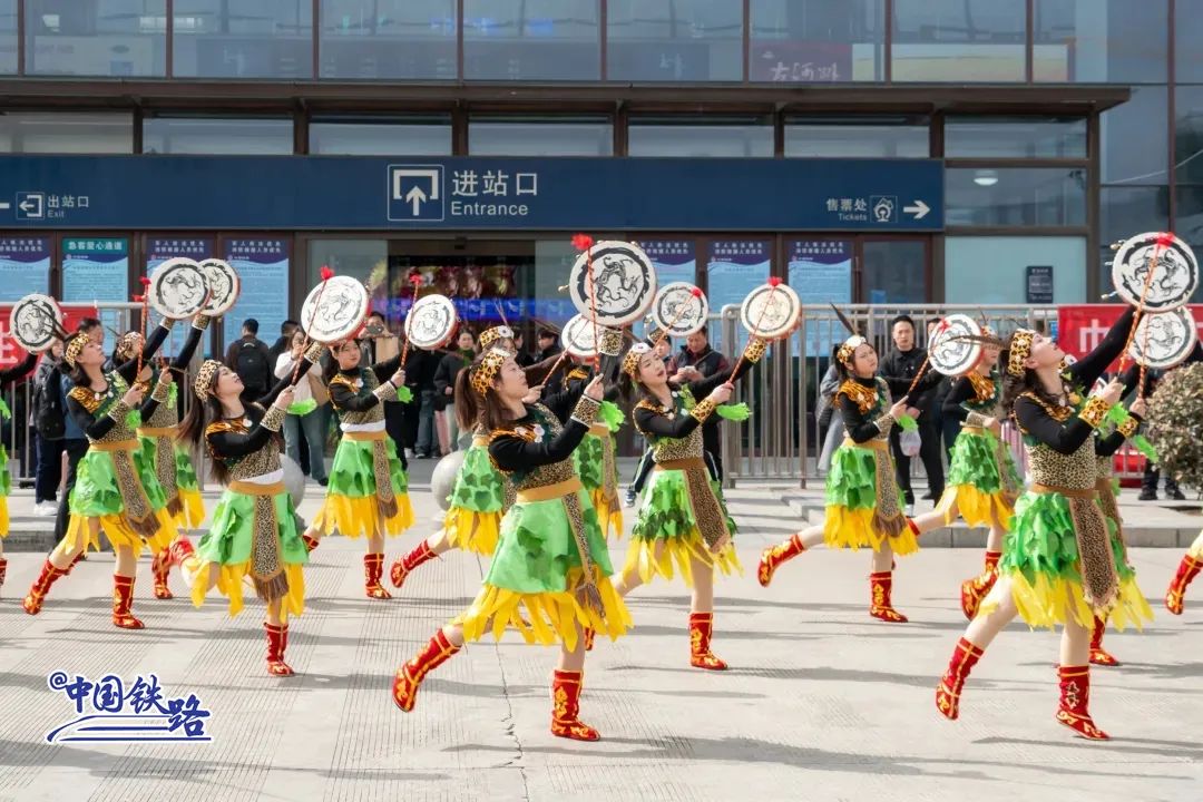 “轩辕鼓舞”向旅客表达热烈欢迎