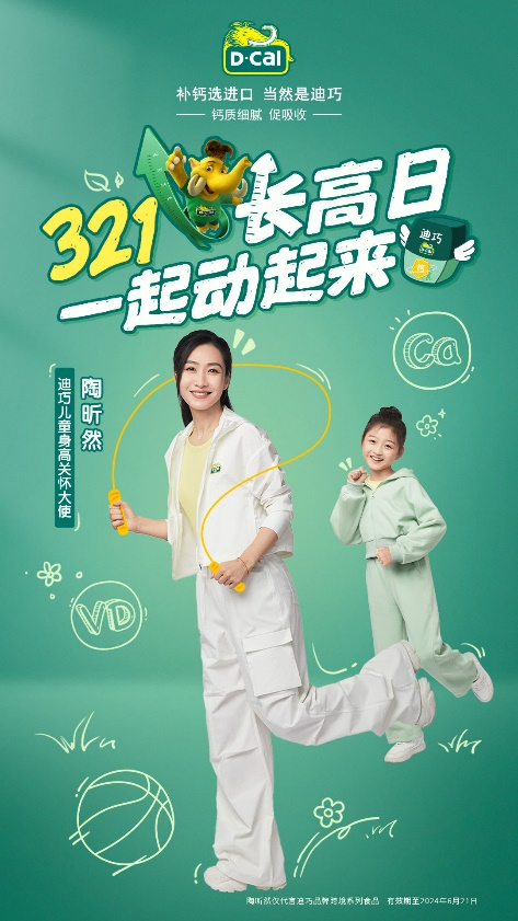 在这个关键时期,迪巧进口钙邀请知名演员陶昕然担任迪巧 “儿童身高关怀大使”,共同呼吁全社会关注儿童长高,同时传递更科学有效的身高管理知识与方法,助力孩子们健康成长。