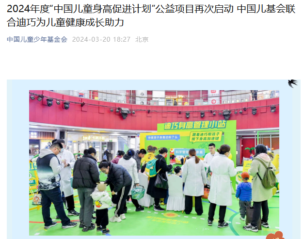 此外,迪巧还将继续联合中国儿童少年基金会开展“中国儿童身高促进计划”,通过线上主题科普和线下活动,帮助家长和孩子了解并实践科学的成长方法。让我们在这个春天,一起行动起来,为孩子的健康成长助力。