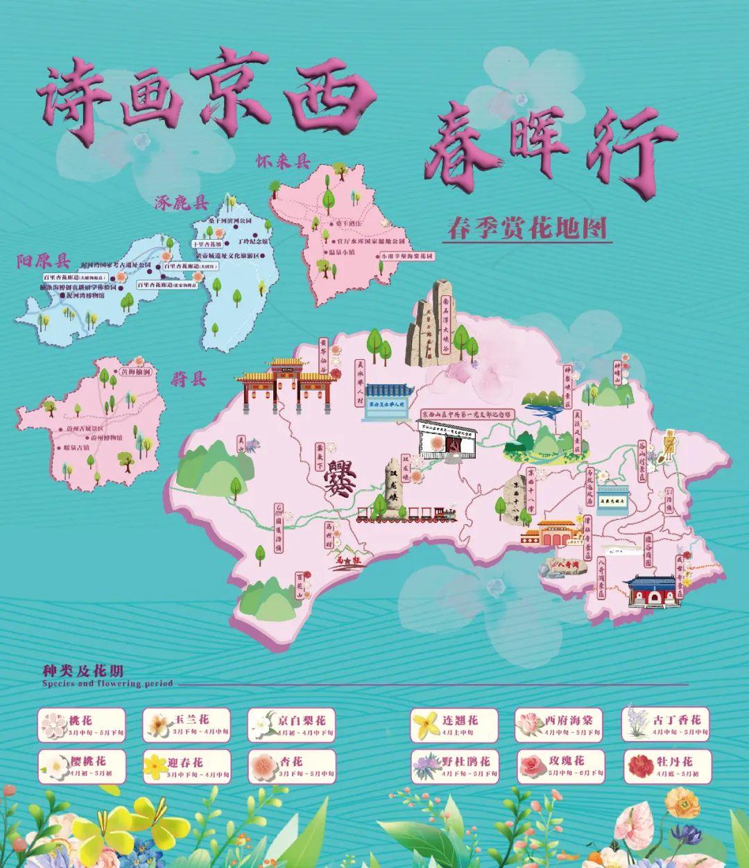 为更好呈现京津冀地区丰富的文化和自然景观资源,方便群众赏花出行,北京市门头沟区联动河北张家口市怀来县、涿鹿县、蔚县、阳原县共同发布“诗画京西春晖行”线路,推出5条精品赏花线路,解锁“赏花+文旅”“赏花+历史”“赏花+博物馆”“赏花+商业”等特色春季玩法。
