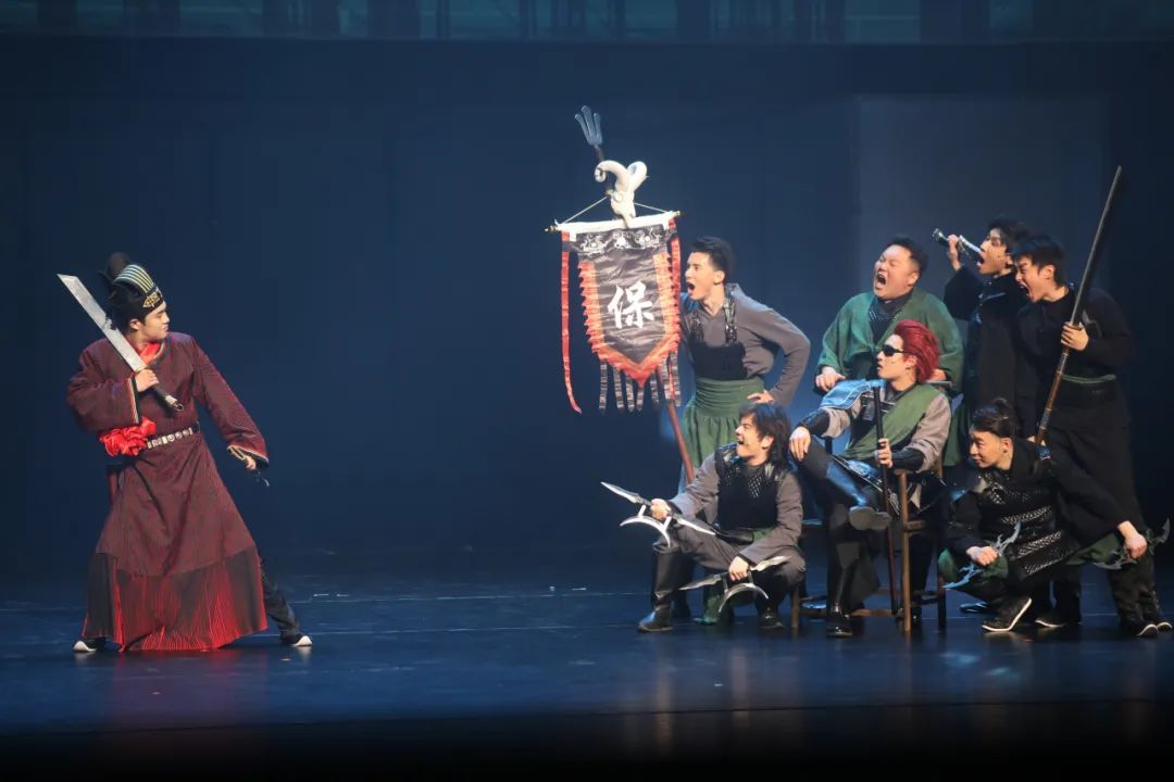 当晚,由中国国家话剧院出品、演出的《蓟州疑云》作为开幕大戏隆重上演。《蓟州疑云》为中国国家话剧院“青年导演创作扶持计划”第一季优选剧目,创作源于主题《水浒传》,讲述施耐庵化身巡尉与小铺兵一起调查一场悬案。演出现场座无虚席,观众热情高涨,演员们通过稳健的步伐,精湛的表演,将角色形象刻画得饱满生动,赢得了观众的阵阵掌声。