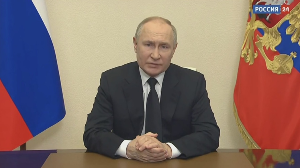 当地时间23日,俄罗斯总统普京就俄音乐厅恐怖袭击事件开始向国民发表电视讲话。