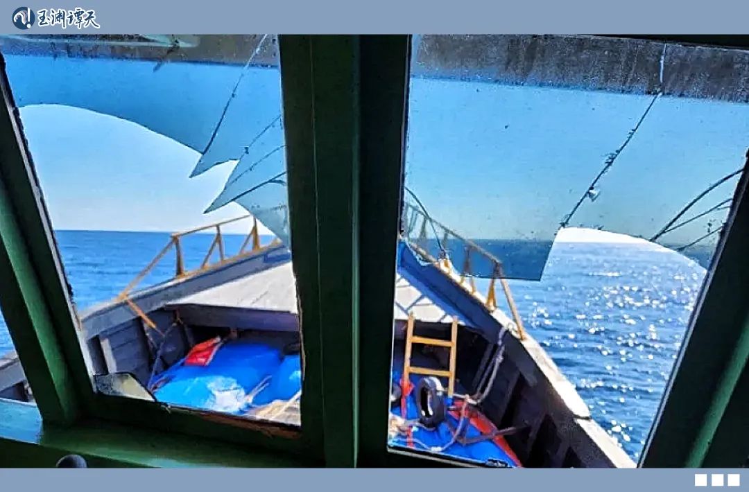 上次,水炮将其舷窗冲破,碎裂的玻璃划伤了躲在船上的菲军军官,菲方还一度拿此事卖惨。而这一次,船上的人直接摇了白旗。