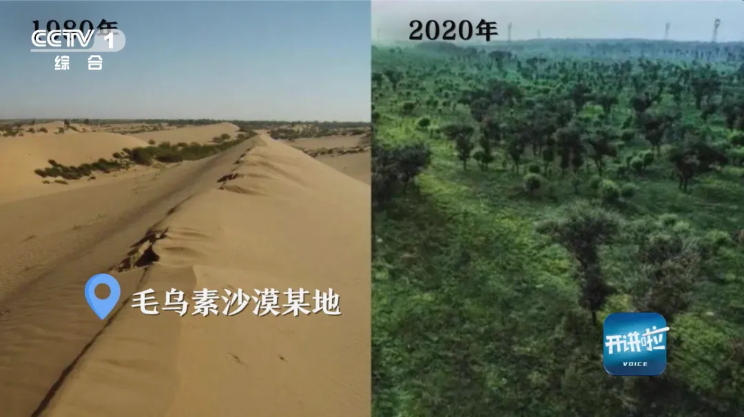 在节目现场,朱教君还展示了一张三北防护林工程实施前后的对比图,令所有人震撼不已。