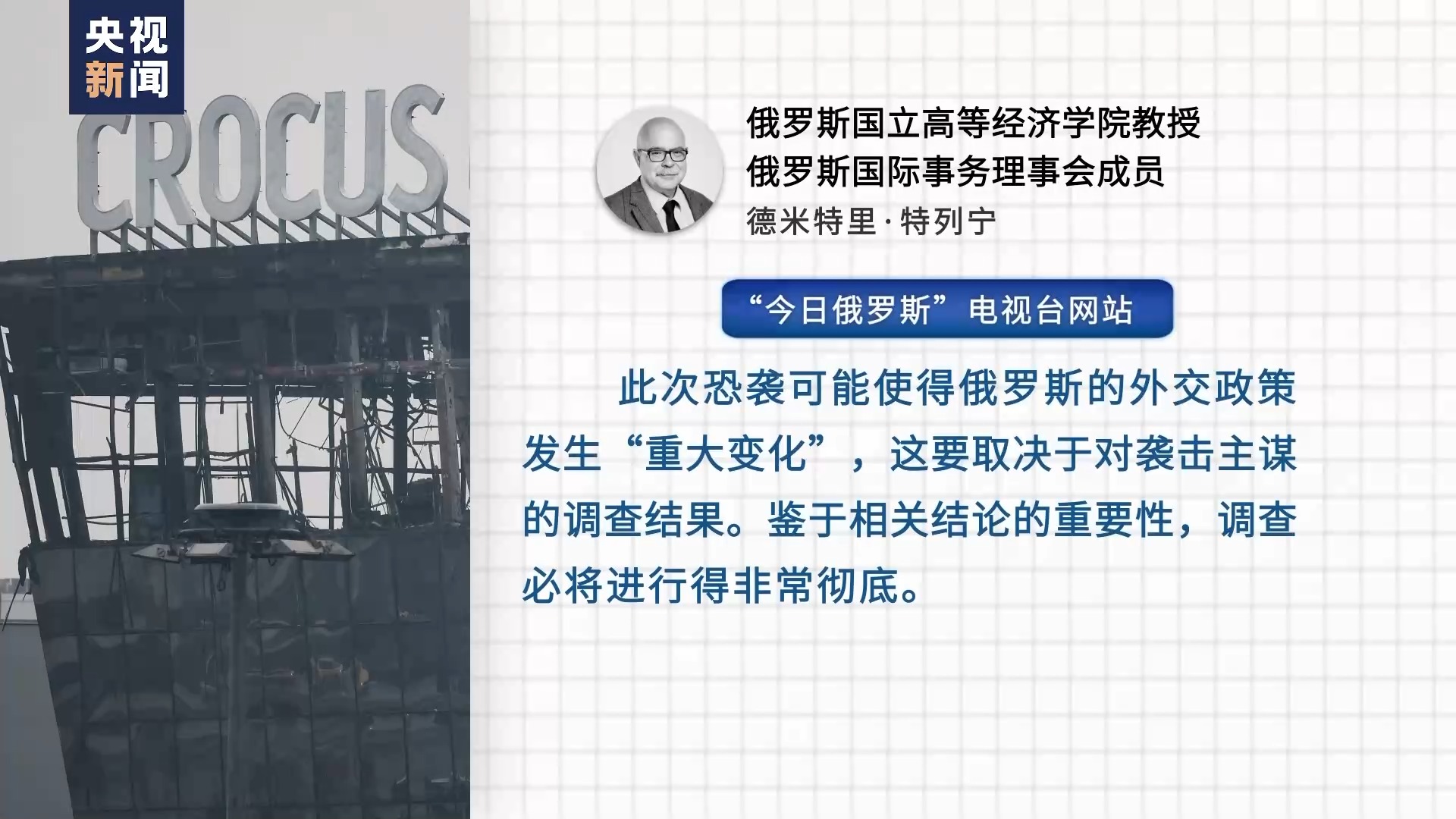 俄罗斯国立高等经济学院教授、俄罗斯国际事务理事会成员德米特里·特列宁25日在“今日俄罗斯”电视台网站撰文说,此次恐袭可能使得俄罗斯的外交政策发生“重大变化”,这要取决于对袭击主谋的调查结果。鉴于相关结论的重要性,调查必将进行得非常彻底。
