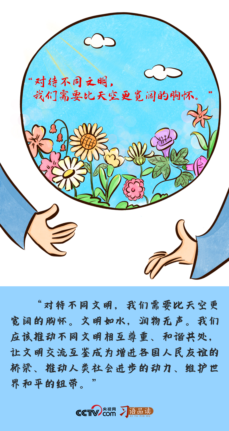 天空无边无际,能够容纳万千气象。要拥有“比天空更宽阔的胸怀”,意味着我们需要以包容之心,去接纳、理解世界各国文明的差异与多样性。