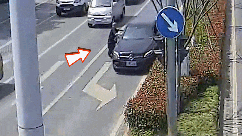 下车跑向黑色轿车查看情况