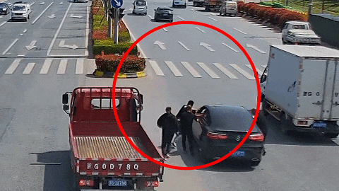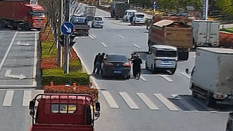 危急时刻,红色货车司机刘胜