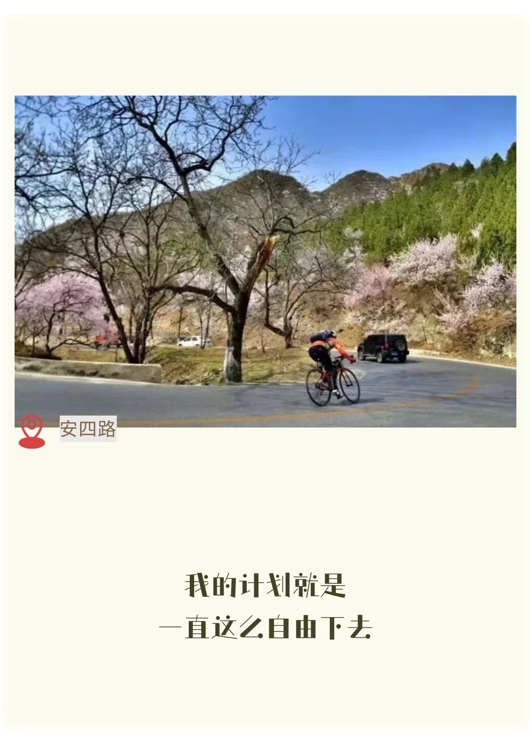 这条山间公路于“2023年环西自行车中国挑战赛•北京昌平段”开赛前夕开通。春季骑行其上,不仅可以饱览壮阔山景,还可以遍赏漫山桃花、梨花。