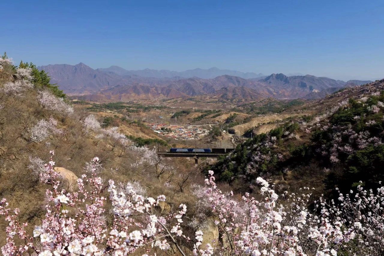 3月下旬,安四路兴寿段山间桃花迎风盛开,沿途的铁路线上常常可以看到列车穿越花海的美丽景象。