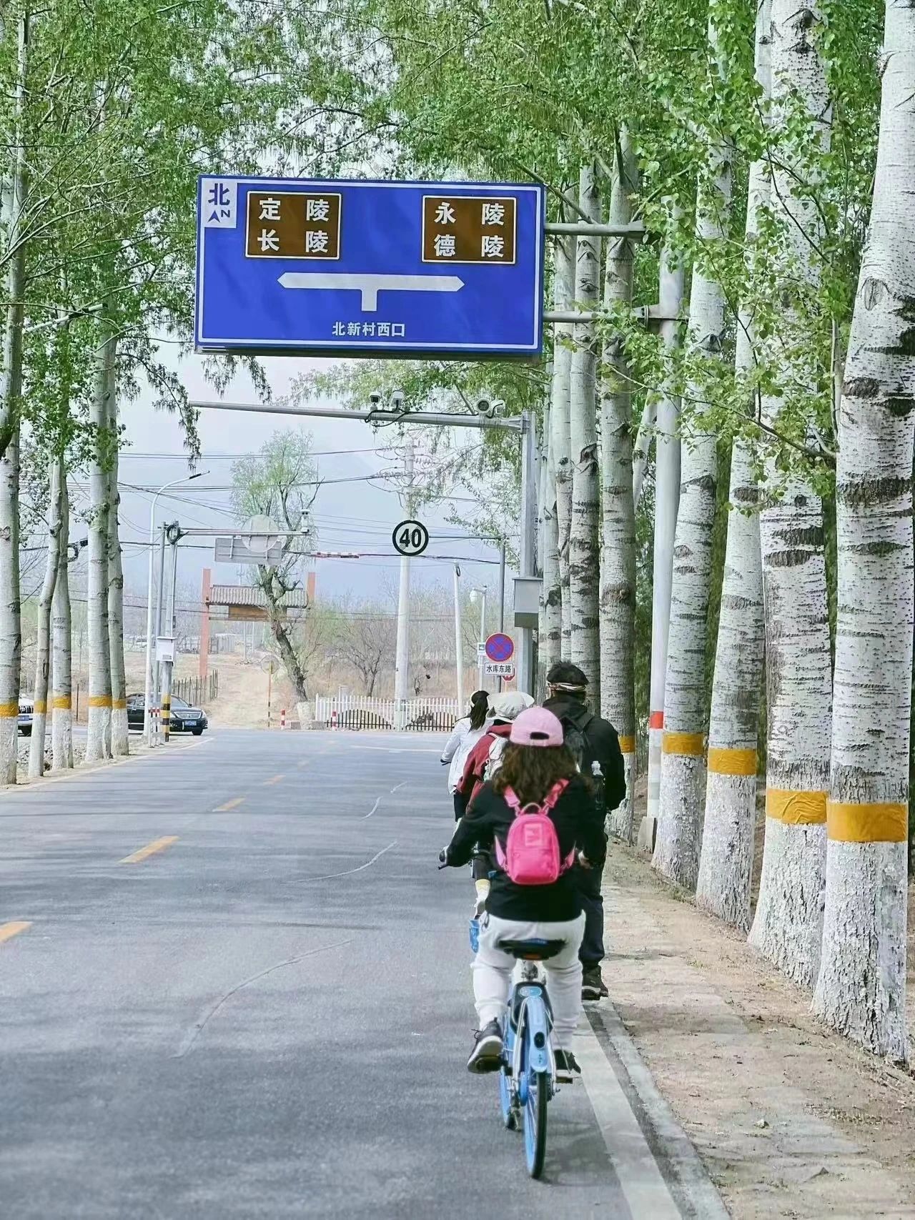 骑行以长陵为起点,途经庆陵村、茂陵村、泰陵村、康陵村、燕子口村、昭陵,终点为定陵,全长20公里。此路线无难度,但穿行村庄时路况可能有变化,建议以山地、公路或者钢架车骑行为主。