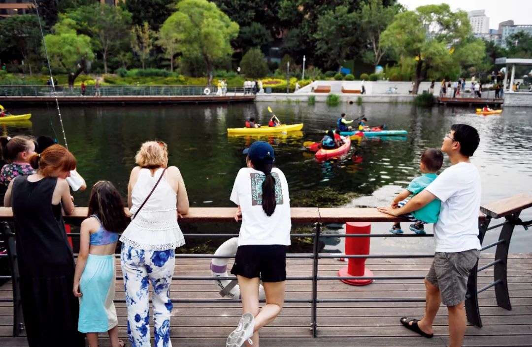 和历史上一样,水道盘活了经济,客流络绎不绝,商户纷纷开张,兴起于漕运时代的“水岸经济”又焕发新生,水绿相融的岸边升起热腾腾的烟火气。朝阳区商务部门数据显示,亮马河通船后周边约七成商业体营收增加,两年来,亮马河周边总客流量增长近14%,重点商业项目销售额增幅超40%,商业活跃度增幅超32%。