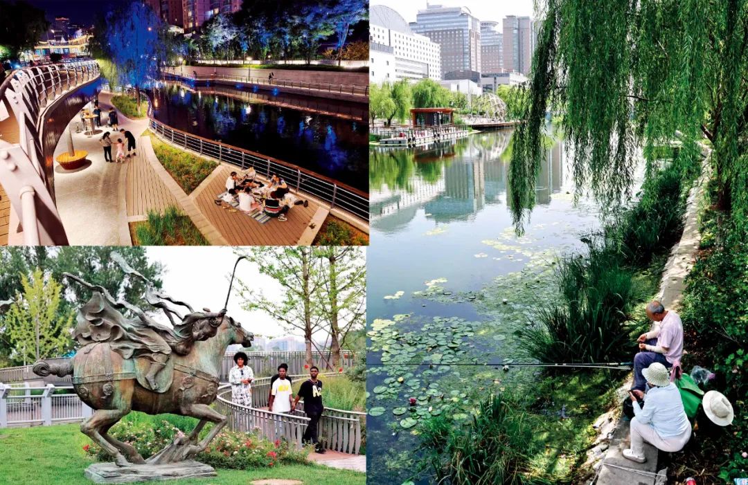 从张燕福居住的枣营北里出来,沿着台阶下至河岸边的步道,穿越三环路仅需要1分半,上层的车水马龙仿佛被隔绝在另一个世界。夏天,岸边会有拂堤的垂柳和飘荡的芦苇,河岸上,几乎涵盖各国口味的餐厅、网红咖啡馆拥河而开,草地边的座椅有年轻人吹风聊天,滨水步道上,孩子们娴熟地骑着平衡车,不时就有各国慢跑者经过……周围的居民不但不再担心河边的安全,这里俨然已经成了他们家门口的“诗与远方”。