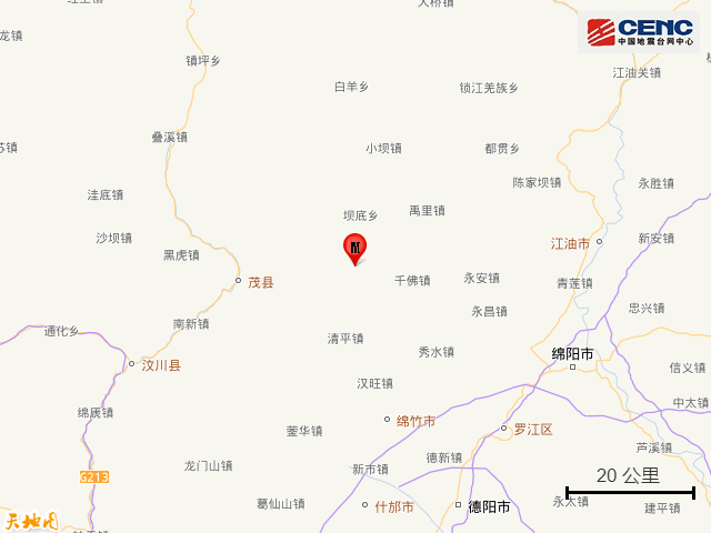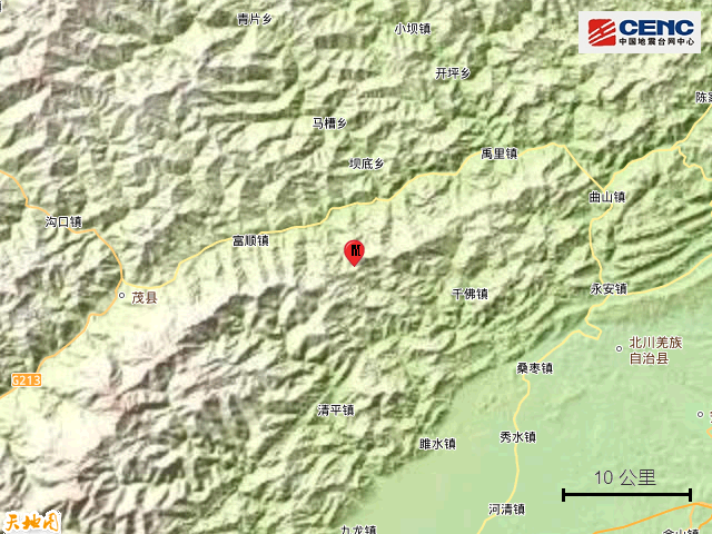 据中国地震台网正式测定,4月2日20时6分在四川阿坝州茂县发生3.3级地震,震源深度18公里,震中位于北纬31.72度,东经104.14度。