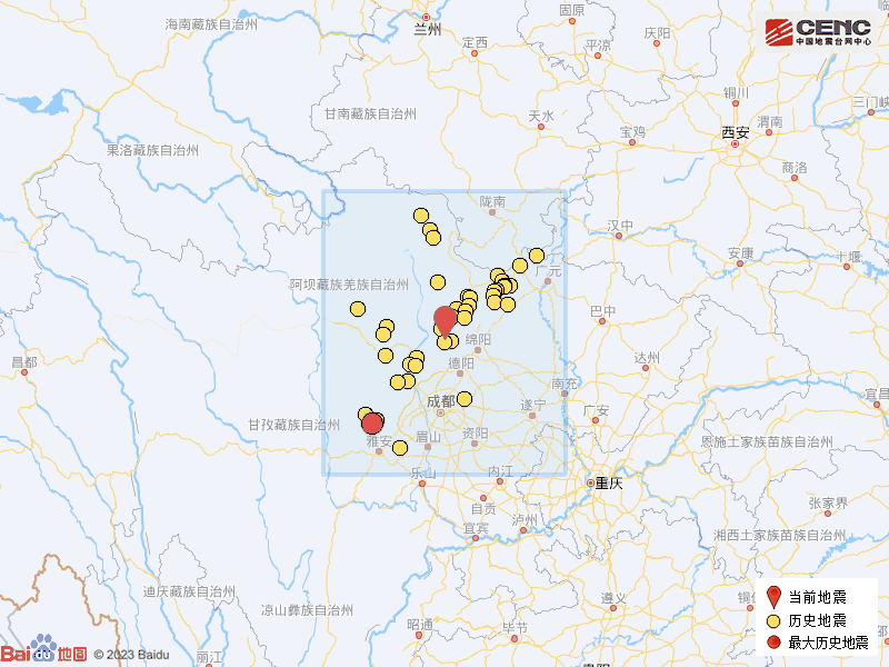 历史地震:根据中国地震台网速报目录,震中周边200公里内近5年来发生3级以上地震共81次,最大地震是2022年6月1日在四川雅安市芦山县发生的6.1级地震(距离本次震中189公里),按震级大小前50次历史地震分布如图。