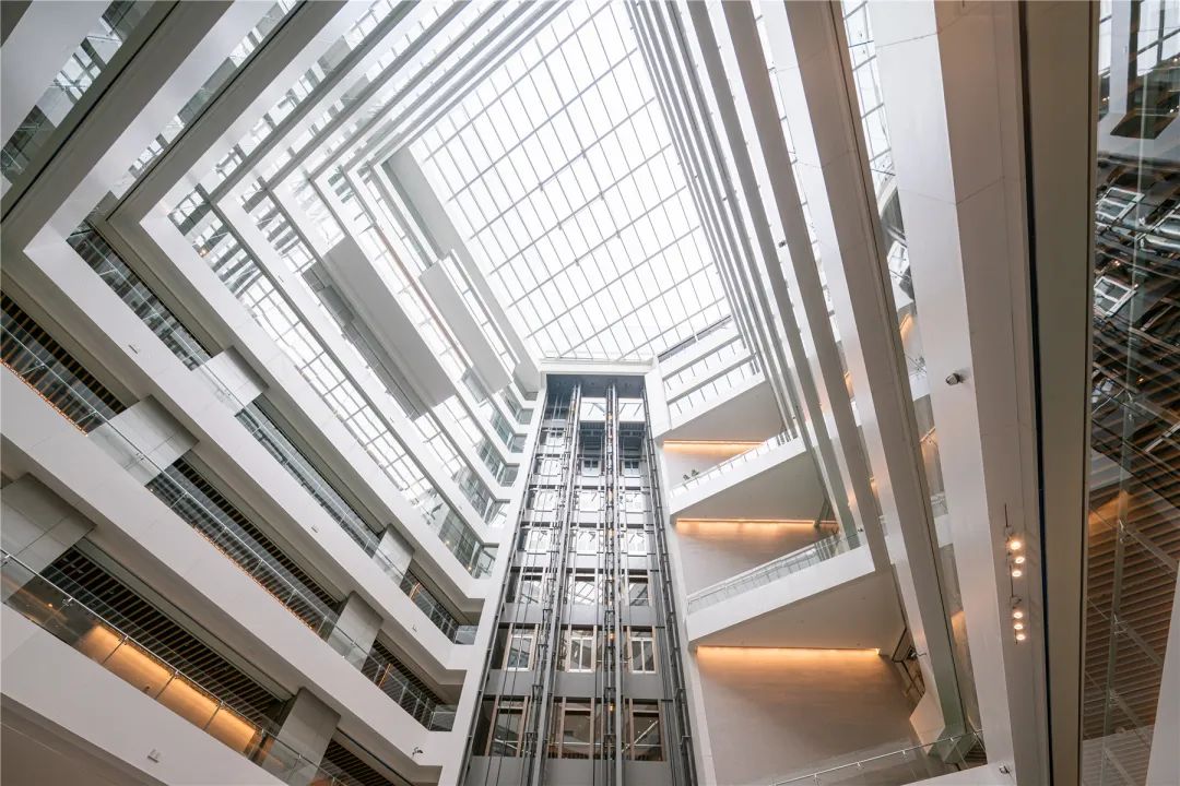 ▲A座观光电梯可以让企业员工欣赏50米沐光中庭的风景