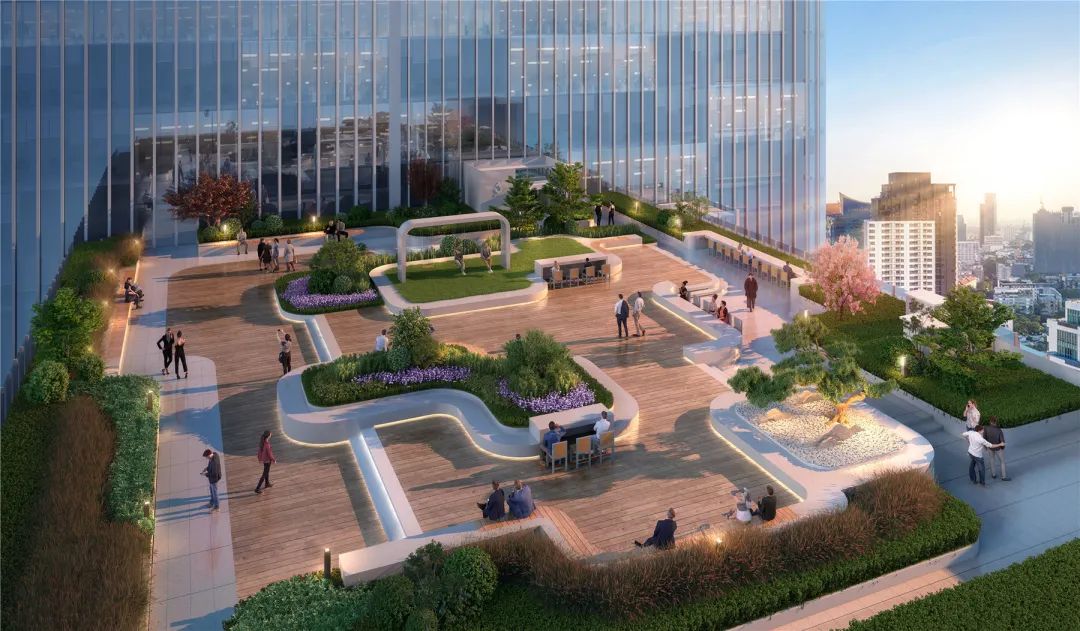 (2)空中花园:立体景观、健康步道引入楼宇,为员工创造专属的室外休闲、商务会谈空间,享受真正的绿色办公。